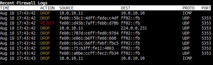 Figure 5. Summary of recent logs at the end of show firewall.